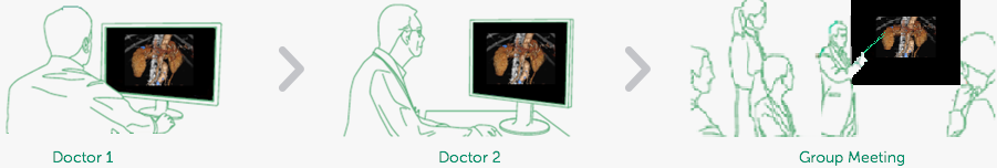 La plataforma común, que recopila todos los módulos funcionales de Synapse 3D, optimiza el flujo de trabajo, permitiendo a cada radiólogo, médico, cirujano o equipo de tratamiento y atención interactuar en cada estudio individual y compartir su trabajo con otros dentro de la organización de atención médica.